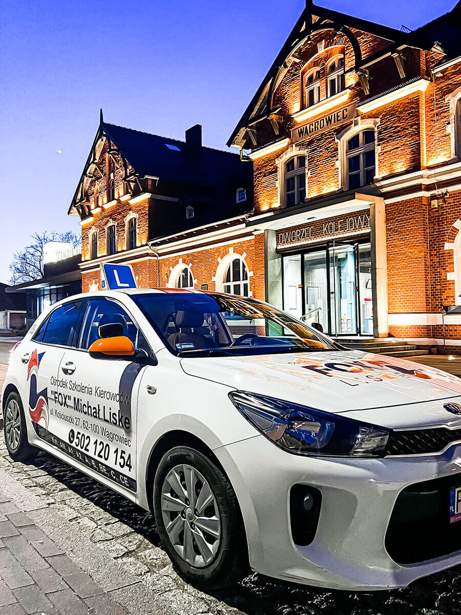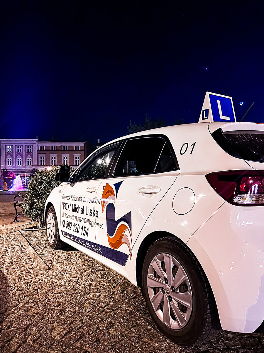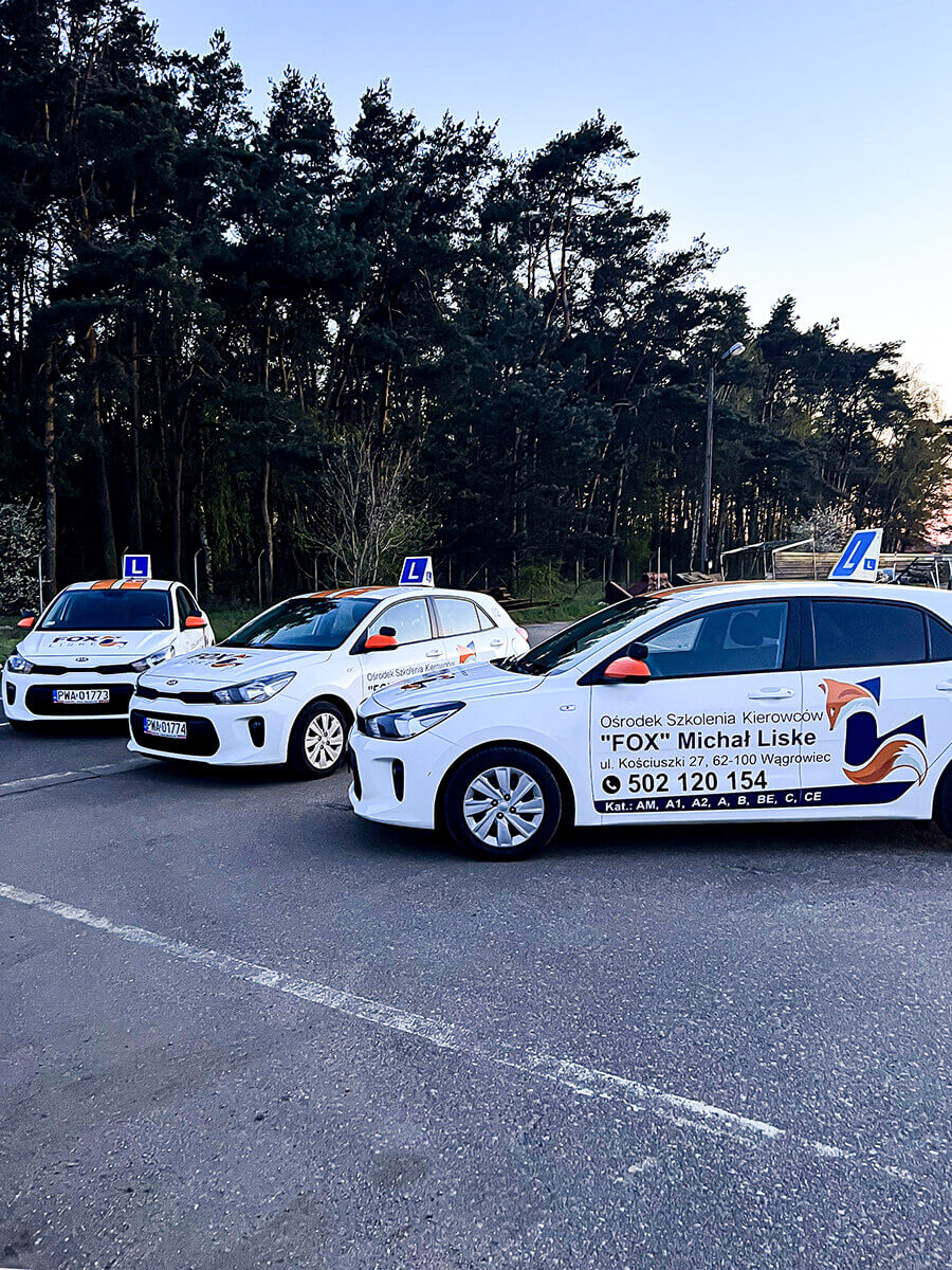 Wszystkie pojazdy są oznakowane logo naszej szkoły jazdy i dobrze widoczne na drodze.